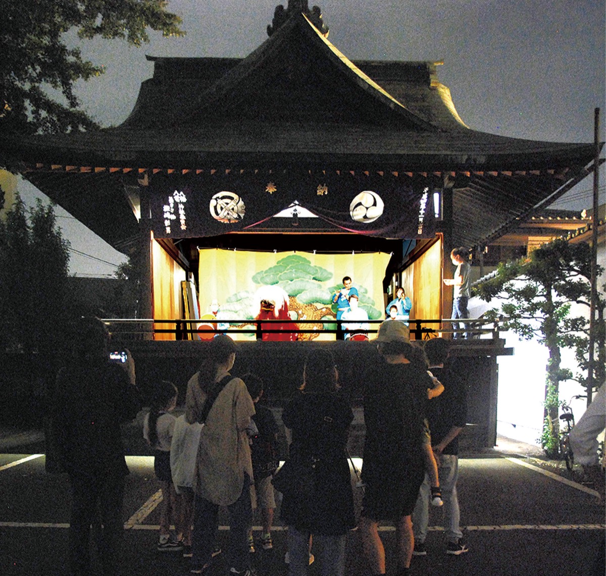 告知なしに夕方6時過ぎから開始されたが、笛や太鼓の音を聞いた地域住民が神楽殿の前に集まってきた。
