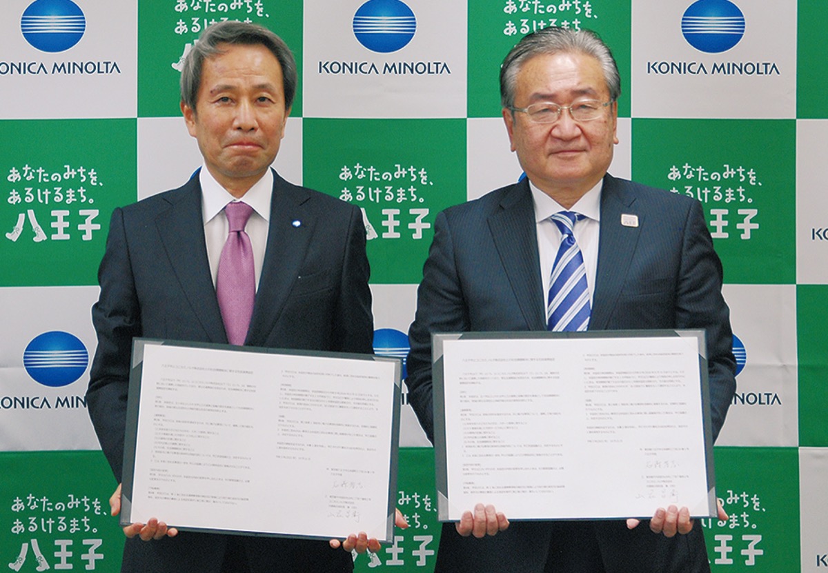 八王子市は10月21日、石川町に施設があるコニカミノルタ株式会社(本社千代田区)と社会課題の解決を目的とする包括連携協定を結んだ。技術者による中学校の部活指導や介護現場でのデジタル技術支援など、双方の情報やノウハウを共有し地域活性に取り組む。