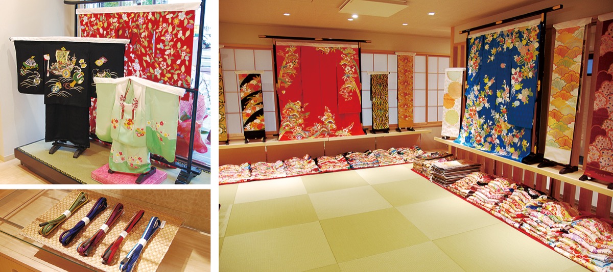 荒井社長やスタッフが京都や新潟などの製造現場に出向き、直接生産者と話して仕入れているからこそできること。「作り手の努力や情熱により生み出される美しさを伝えていければ」と荒井社長。振袖は京手描き友禅、西陣織、総絞りなど、古典柄を中心に、およそ300点。「すべて自信をもってお勧めする本物の着物です」。創業100年を超えてなお『確実なものがある』と変わらぬ信頼が寄せられる。