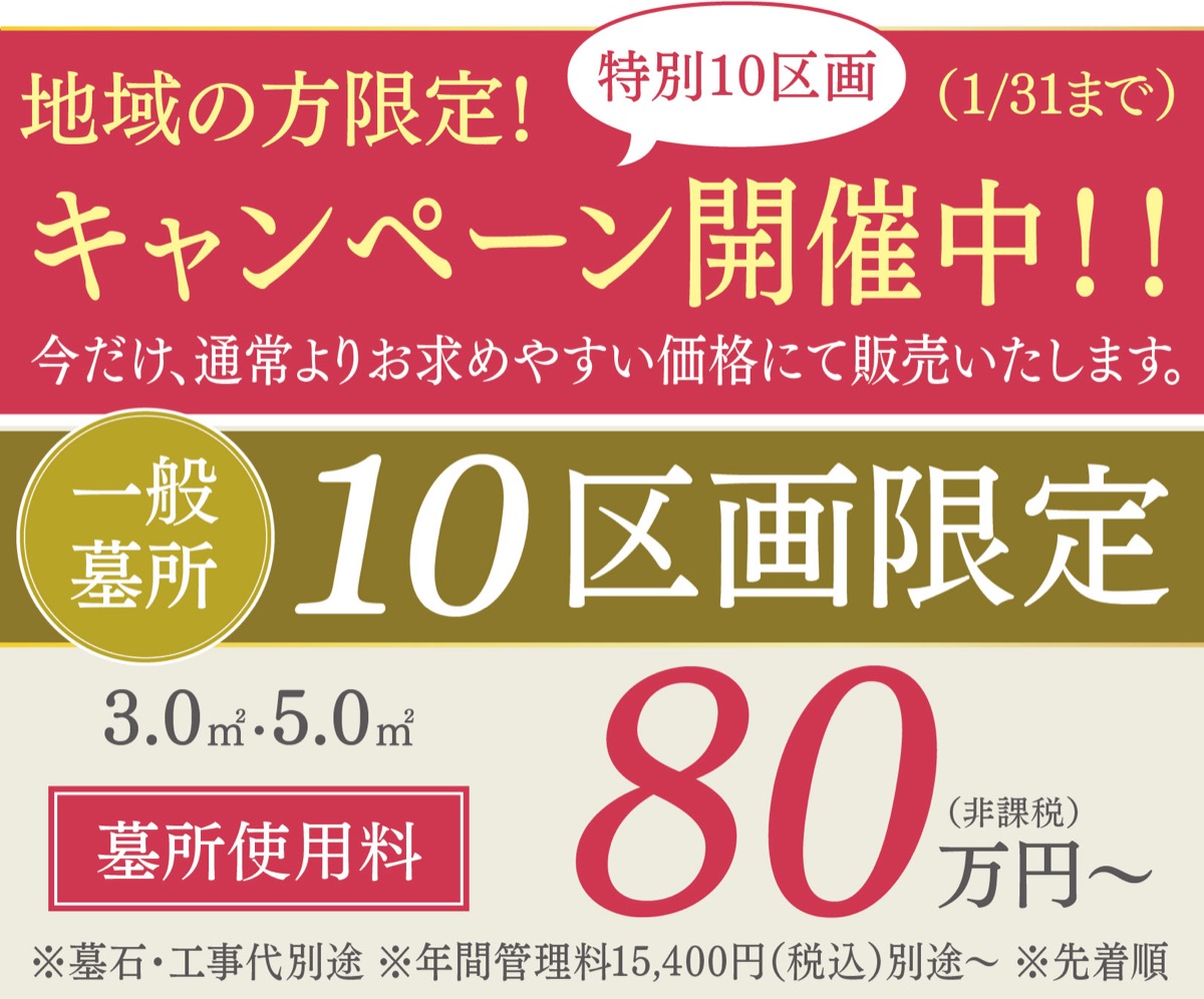 1965年の開園以来、半世紀のときを刻む格式ある高級公園墓地「東京霊園」|。かつて、文化人たちが愛した武蔵野の雄大な自然と、穏やかな風情を今も色濃く留めるこの地に、永遠のやすらぎの地として位置している。その穏やかな丘陵に広がる豊かな自然に包まれたロケーションは、春は桜、秋は紅葉と、移り行く四季の情景を堪能できる抜群の園内環境だ。そんな同園では、前回好評を博したという、墓所使用料を80万円〜とお求めやすい価格にしたキャンペーンを、日頃の感謝を込めて、地域の人に限り「特別10区画」限定でキャンペーンを延長する(令和4年1月31日(月)まで)。また、お墓の跡継ぎがいなくても安心な「永代供養墓」も75万円〜用意。「年末年始など、ご家族で集う際に、お墓の話しをされることも多いとお聞きします。ぜひ一度、お越しいただきご相談ください」と担当者は話す。宗教不問。見学会も毎日開催している。