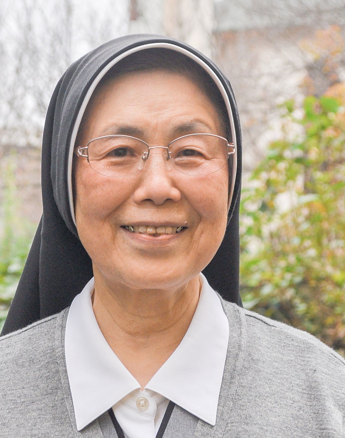 ○…長崎県の出身。代々続くクリスチャンの一家に生まれた。中高は鹿児島にある純心学園の姉妹校へ進学。親元を離れた寮の生活は「寂しくて涙がポロポロ出ました」。卒業後、上京し滝山町にある東京純心女子短期大学に1期生として入学。シスターになるための修練期等を終えると愛知県立芸術大学に入学し油彩画などを学んだ。同短大、東京純心大学で教鞭をとり、10年前からの6年間は同大学の学長を務めた。