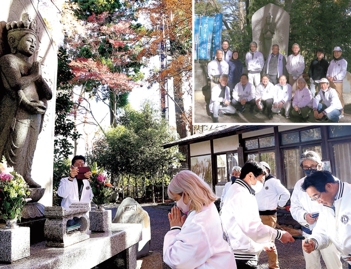 奉仕団体・東京八王子中央ライオンズクラブ(LC)は12月4日、高尾山の仏舎利塔近くにある千手千眼観音菩薩像の清掃を行った=写真。