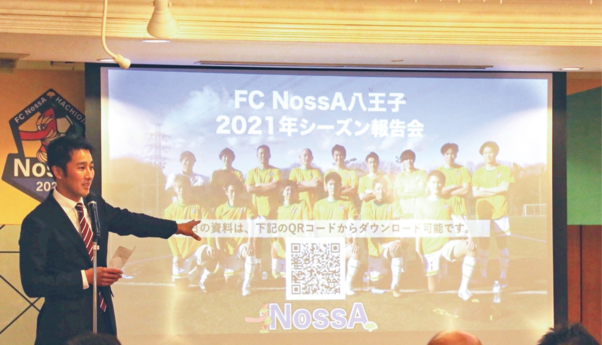 社会人サッカーチームFCノッサ八王子((株)八王子Jリーグプロジェクト運営)は昨年12月22日、八王子エルシィで「2021報告会」を開催した。関係者やスポンサーが招かれ、今年度の会計状況や次年度の方針などについて発表された。