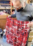 澤井さんは多摩織の伝統工芸士で、褒章の功績については業務精励(織布工・卓越技能)となっている。