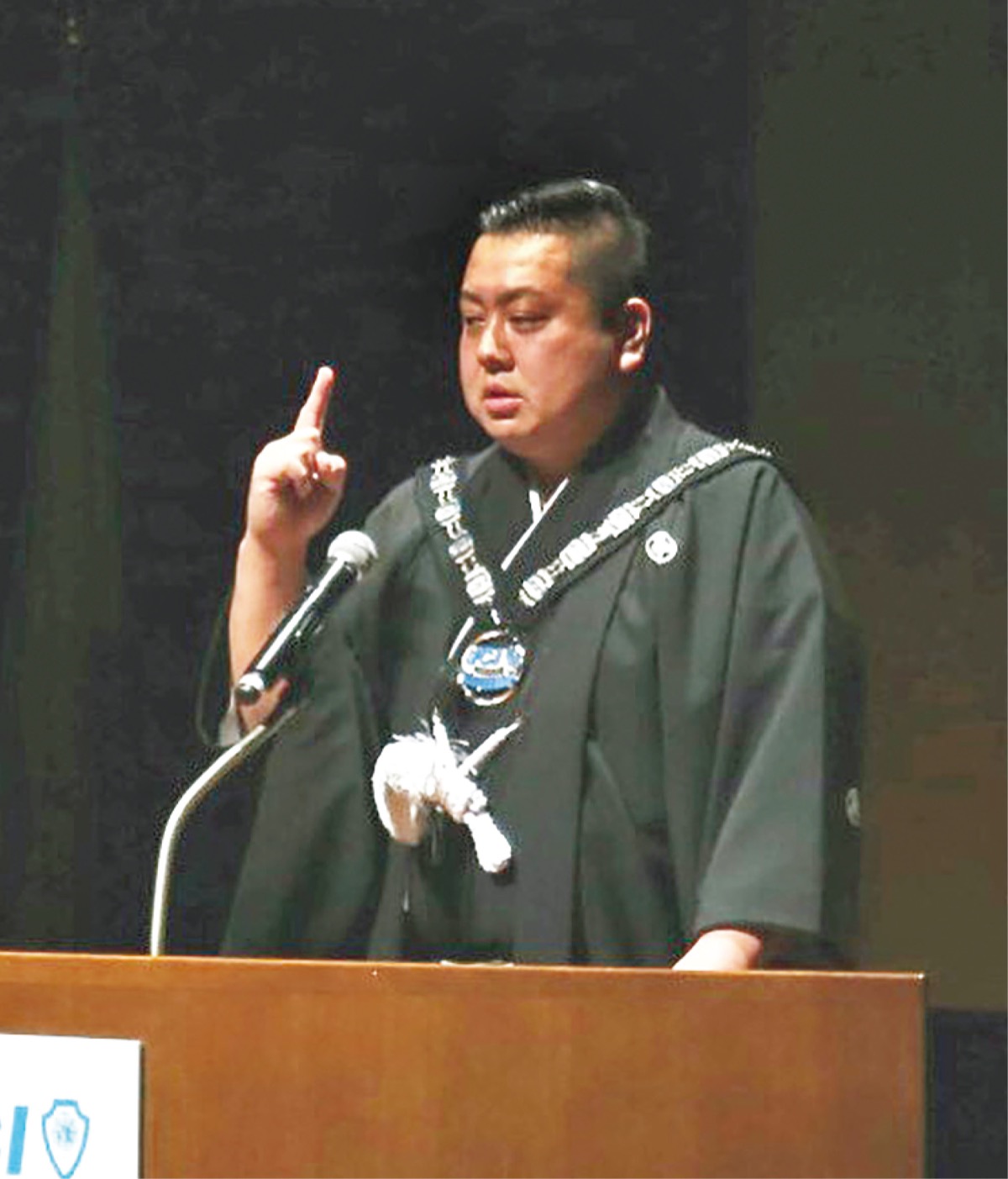 第57代理事長となった菊嶌太士さんは、今年のスローガンである「一番を掴み取れ」にちなんだ所信表明として「八王子は有数の学園都市であり、都で唯一の日本遺産認定を受けているなど『一番』が沢山ある」とし、学生と一緒に街の魅力を創造していく方針や、SDGs推進について語った。最後は「みんなが八王子を大好きになるために、1番を掴み取れ」と締めくくった。