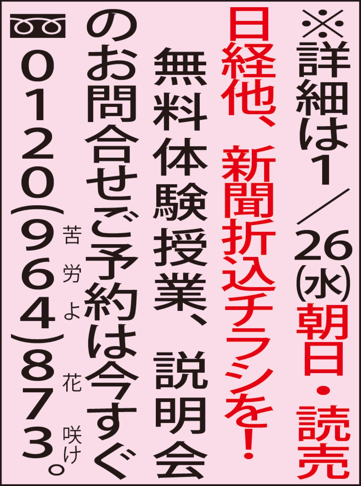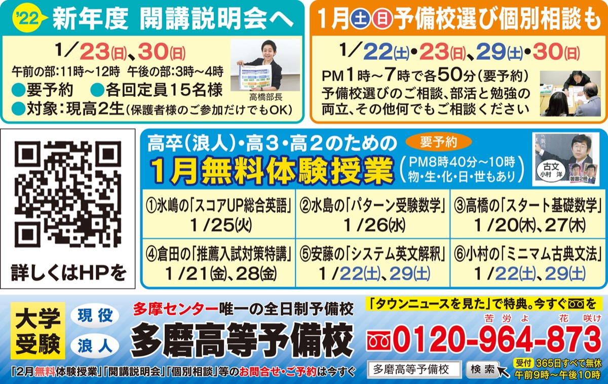 「映像なし、マイクなし」「真剣勝負の少人数授業」で評判の予備校が多摩センターにある。多磨高等予備校だ。同校は大学受験で「現浪合格」の実績を多く持つ。「高2の冬スタートで合格できるには理由があります。多磨ヨビは2月4日(金)に新学期開講。その前に体験授業他(下記表)に来て下さい」と代表の小村洋さん。今回は合格報告の様子を紹介する。※訪問者(敬称略)=山中理玖君(国立・三重大→同大院)とお母様