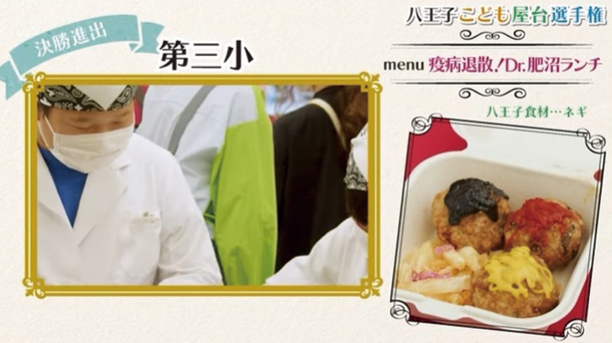 小学生たちが八王子産の食材を使ったオリジナルメニューを考案・調理する「八王子こども屋台選手権」で昨年グランプリを受賞した「チーム第3小」(寺町)による「疫病退散!Dr.肥沼ランチ」が給食のメニューとして1月12日から31日までの期間、市内の全小学校と義務教育学校で提供されている。同選手権は八王子青年会議所が主催して行われたもの。