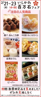 加賀百万石の石川県ならではの美味しい和菓子や特産品を集めた「いしかわ百万石フェアin立川駅」が、2月21日(月)から23日(水)まで、JR立川駅東改札内「エキュート立川」で開催される。時間は午前11時から午後9時30分(最終日は午後8時30 分迄)。