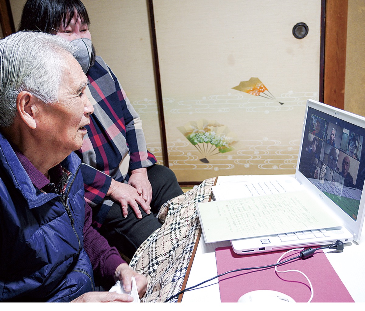 ズーム井戸端会議を提案したのは、同クラブの講師を務める軽込行雄さん(87)。もともと週1回、ワードなどを使い夏祭りのポスターや名刺づくりを指導していたが、コロナ禍で活動休止に。「みんな寂しい思いをしているのではないかと思った」と話す。