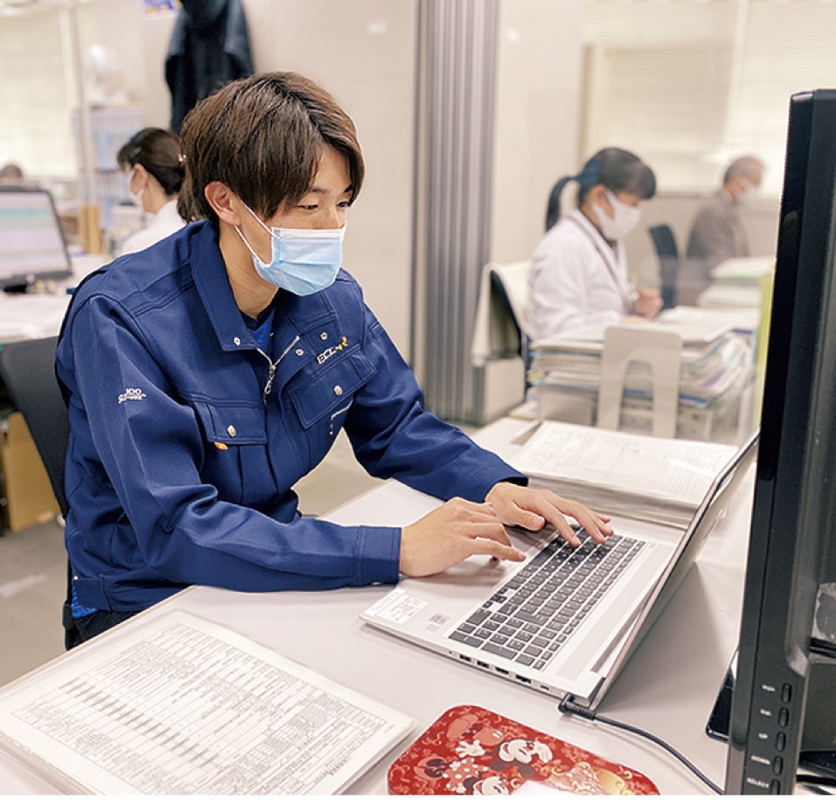 アスベスト、土壌汚染、放射能など環境に関する各種調査、分析を担う同社において、FWの田口光樹選手(28)は20年から品質保証グループに、MFの高慶汰選手(26)は今年から環境監視グループに所属。2人とも下恩方町にある技術センターで午前から午後にかけてデスクワークをし、夜は武蔵野市にあるグラウンドで練習をしている。