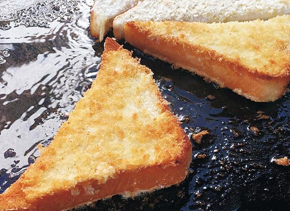 八王子が誇るご当地C級グルメが「パンカツ」だ。物資のない戦後に生まれたオヤツで「カツ」を「思わせる」食べ物。パンに水で溶いた小麦粉ををつけてパン粉をまぶし、ラードをひいたフライパンに入れて焼き上げる。仕上げはソース。
