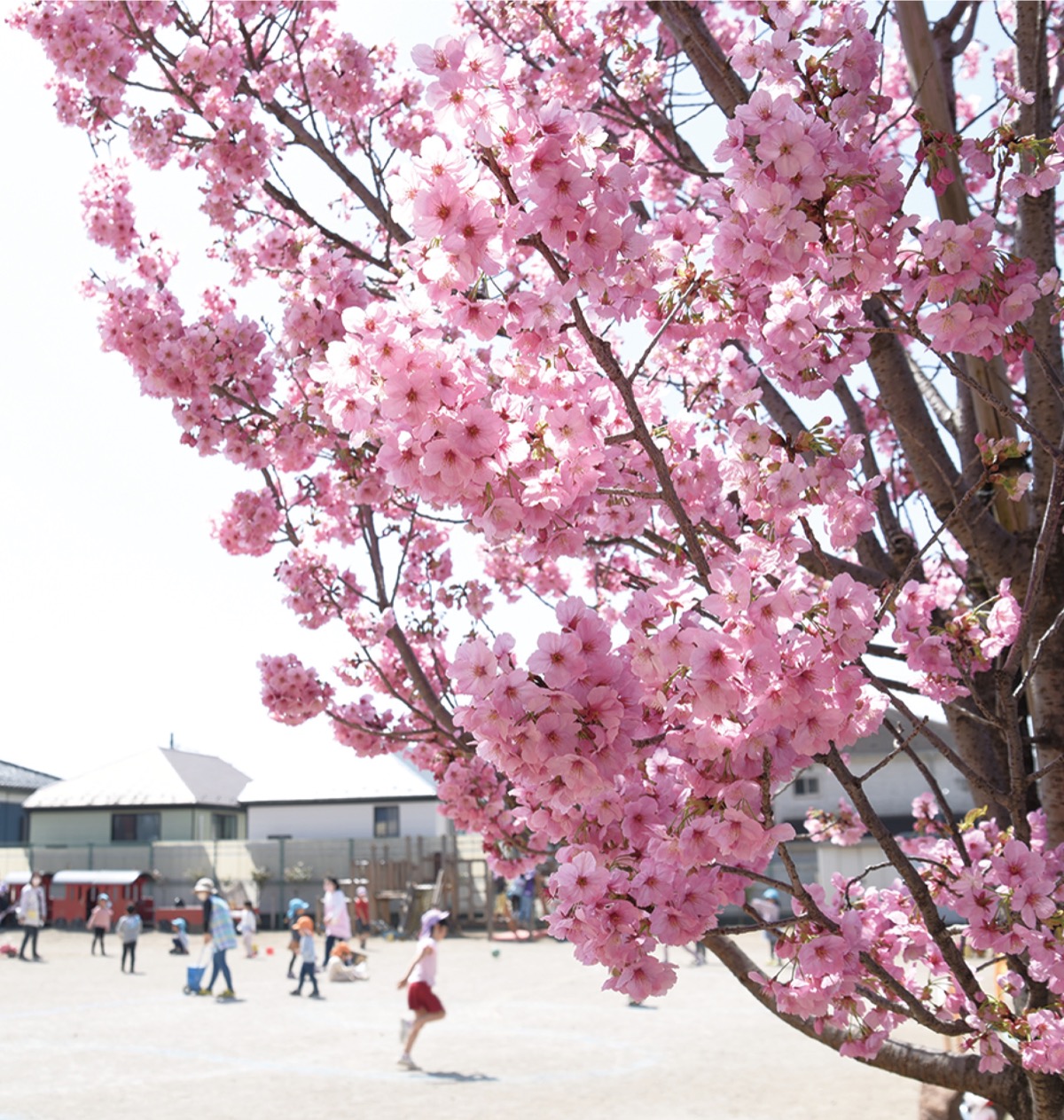 3月30日に、桜と一緒に記念撮影する卒園児と保護者も。櫻澤武秀園長は「ここで写真を撮る方も多く、皆さんに喜んでいただいている」と笑顔を見せた。「桜の花は心が和む。子どもたちのまっすぐな成長を願いつつ、桜の木がずっと見守ってくれている」と櫻澤寿美枝総園長。「花びらが散ると、実ができて落ちてくる。それを子どもたちが拾うの」。そっと教えてくれた。