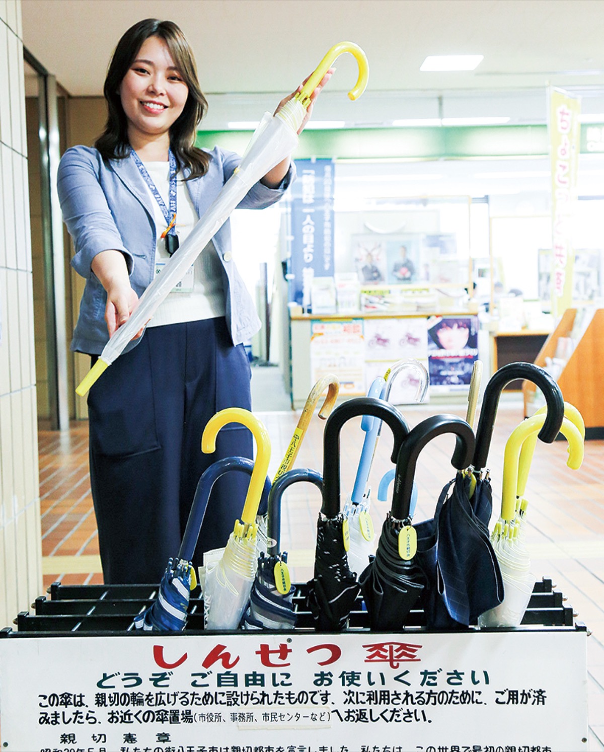 今も続く活動の「親切傘」は、突然の雨で困っている人に利用してもらおうと、発足の翌年から設置。同会は60年間で2万本以上の親切傘を提供しており、現在では市民から提供された傘や忘れ物を再利用した「リサイクル親切傘」も導入している。さらに「社会の中で埋もれている親切に感謝しよう」との考えで、「親切表彰」を毎年実施。年間で20前後の個人と団体が表彰されている。「広報はちおうじ」を通じて、毎年6月に推薦を募集している。