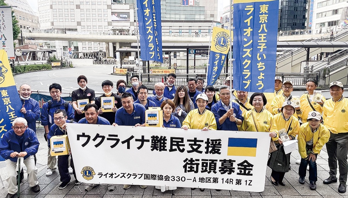 東京八王子いちょうライオンズクラブ(LC)と東京八王子高尾LCは14日、八王子駅北口でウクライナ支援の募金活動を行った。