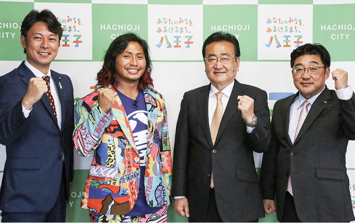 出場選手の一人で、八王子出身の高橋ヒロム選手が5月10日、石森孝志市長を表敬訪問。高橋選手は元八小、元八中、八王子実践高を卒業。出身地で初の「凱旋興行」となる。高橋選手は「コロナ下で会場に足を運んでくださる皆さんのために、生の迫力を伝えたい」と力を込めた。