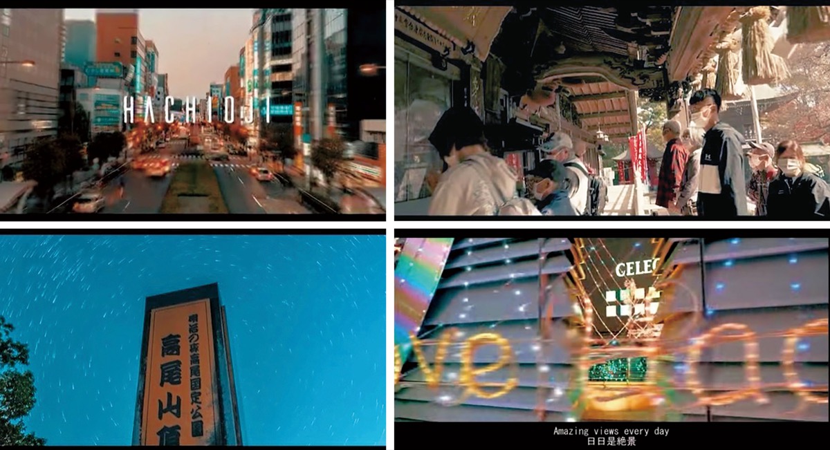 作品は、八王子の都市部と高尾山などの自然の豊かさから「見る」「感じる」「楽しむ」をテーマに制作した映像「日日是絶景・八王子」=左写真。大学コンソーシアム八王子が今年2月に実施した「八王子学生CMコンテスト」で最優秀賞を受賞。同コンソーシアムからの推薦で今回の選考にエントリーされた。