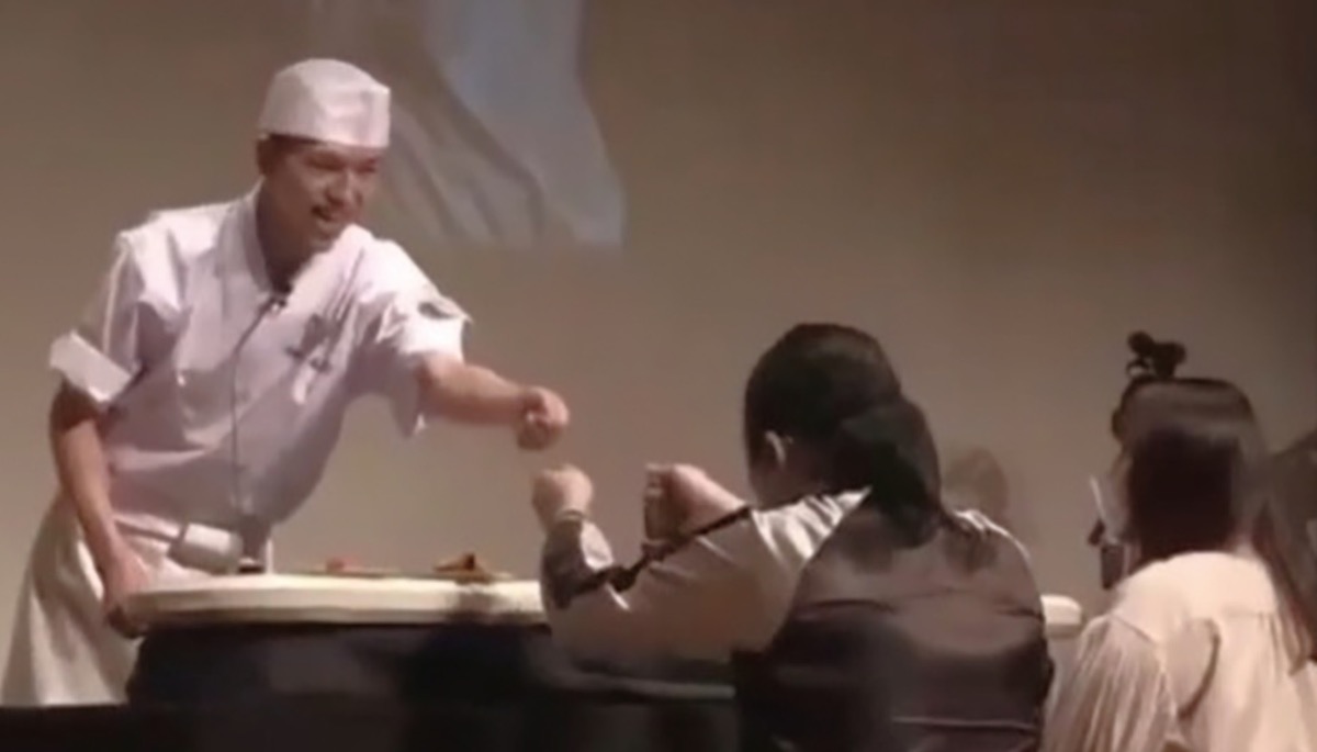 2部は接客技術が問われる内容に。回転寿司のレーンを挟んで来店客を前に寿司を握る設定で、お勧めの魚を聞かれたときの対応や魚の説明なども審査対象となった。佐藤さんは「今日の朝、まだ海で泳いでいた真アジです」など、説明の表現に工夫を凝らした。