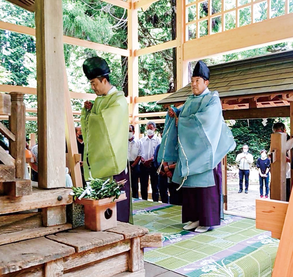7月18日に行われた覆殿の竣工祭には、関係者約50人が参加し、完成を祝った。覆殿が建て替えられたのは約120年ぶり。同神社の梶原正統宮司は「長い年月をかけて守っていきたい」と感謝した。