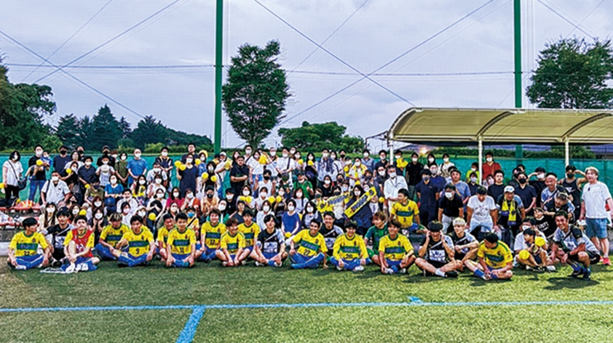 7月18日に戸吹スポーツ公園で行われた試合には、約150人のファンが駆けつけ応援。選手らは、ファンと記念撮影するなど交流を深めた=写真(チーム提供)。