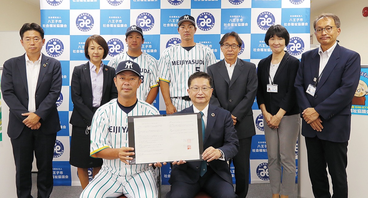 社会福祉法人八王子市社会福祉協議会(社協)は8月25日、戸吹町を拠点に活動する社会人野球チームの明治安田生命硬式野球部と「災害時におけるボランティア活動に関する協定」を結んだ。