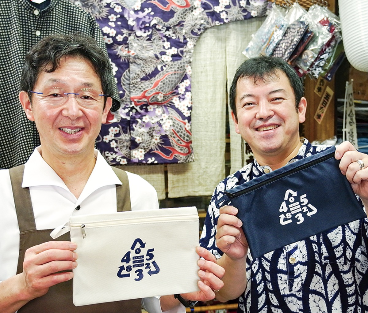 副会長でデザインを担当する中川大輔さんは「今年は使いやすいポーチに。前回のエコバッグの中に入れて一緒に使ってもらいたい」と呼びかける。副会長の今井治さんは「日頃の感謝を込めて。商店街を回ってもらえれば」と期待する。