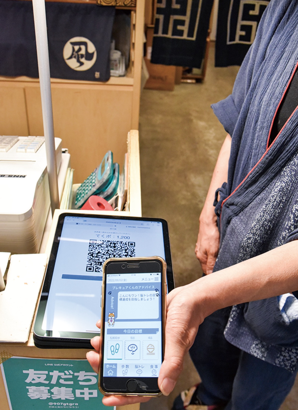 昨年10月に登録した長房町の田所房子さん(60代)は、アプリでの脳トレーニングを日課にしているという。「認知症にならないようにと思い、続けている。ボランティア活動でもポイントがもらえて、買い物にも使えるので便利」と好感触。初年度から協力店として参加するお茶販売店・網代園(横山町)の網代邦子代表は「新規客が増え、お店を知ってもらえたのはありがたい」と振り返った。「スマホを初めて持つ、使い方がわからないお客さんも多い」と、サポート体制の充実を求める声もあった。