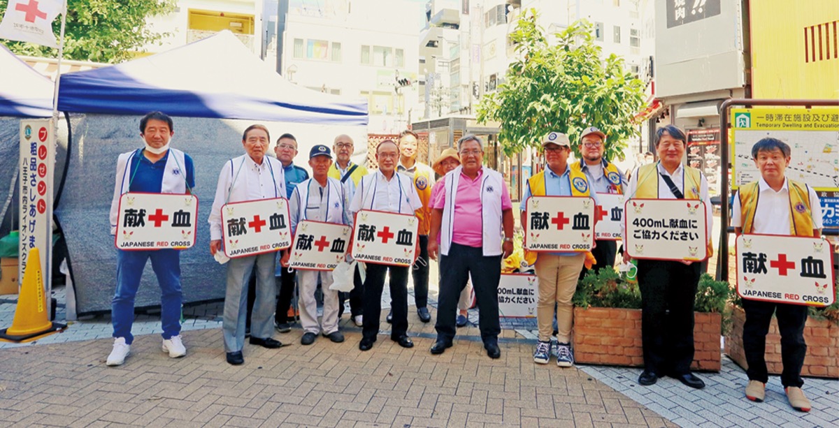 奉仕団体「ライオンズクラブ」(LC)で八王子市内に拠点がある5団体(中央、いちょう、高尾、陵東、桑都)による合同の献血活動が9月6日、西放射線ユーロード沿いの三崎町公園で行われた。会員たちは、通行人に献血への協力を呼びかけた。