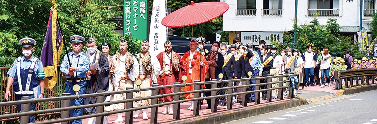 高尾交通安全協会(小松政見会長)は恒例の交通安全祈願パレード「火のまつり」を9月10日、高尾山で開催した。