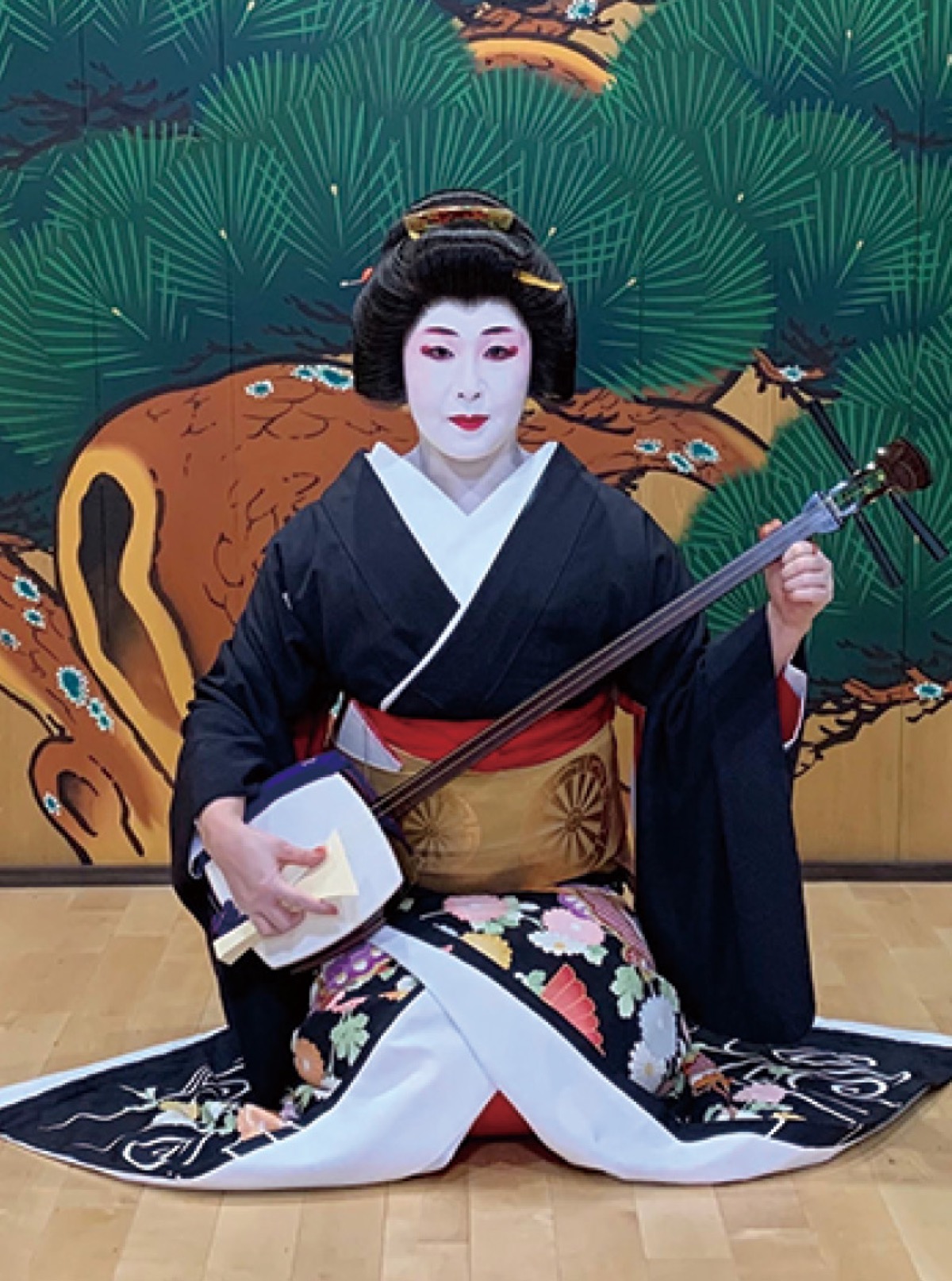 「サックスで聴く歌のないポップミュージック」と題した同公演には、八王子芸者衆の小太郎(菊よし)=写真=も出演。三味線や歌、踊りを披露。午後2時開演。