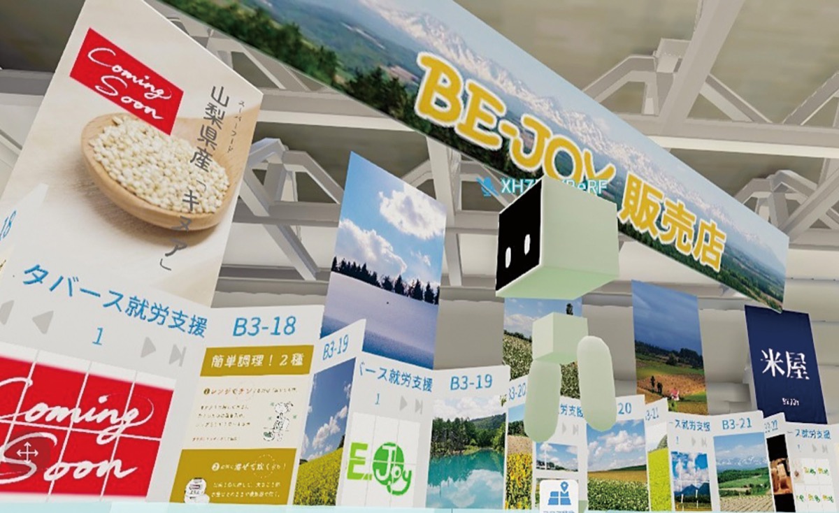 メタバースとは、インターネット上に構成される3次元の世界で、自分の分身が買い物をしたり他者との交流を楽しめる仮想空間。その空間内に店舗を作り、就労継続支援B型事業所の利用者たちが、顧客対応や店舗の装飾、受注管理を担うほか、SNSによる広報宣伝なども行う。