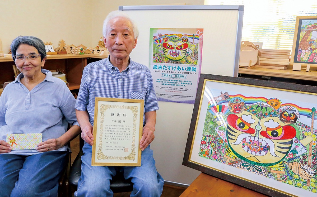 赤い羽根共同募金の八王子地区の今年度のポスターに、社会福祉法人蕗の会 障害福祉サービス事業所ひのき工房の今井隆さんによるイラスト「寅の高尾山ケーブル」が採用された。障害者文化展の応募作品の中から選ばれた。八王子市社会福祉協議会は9月30日、同工房で今井さんに感謝状を贈呈した。