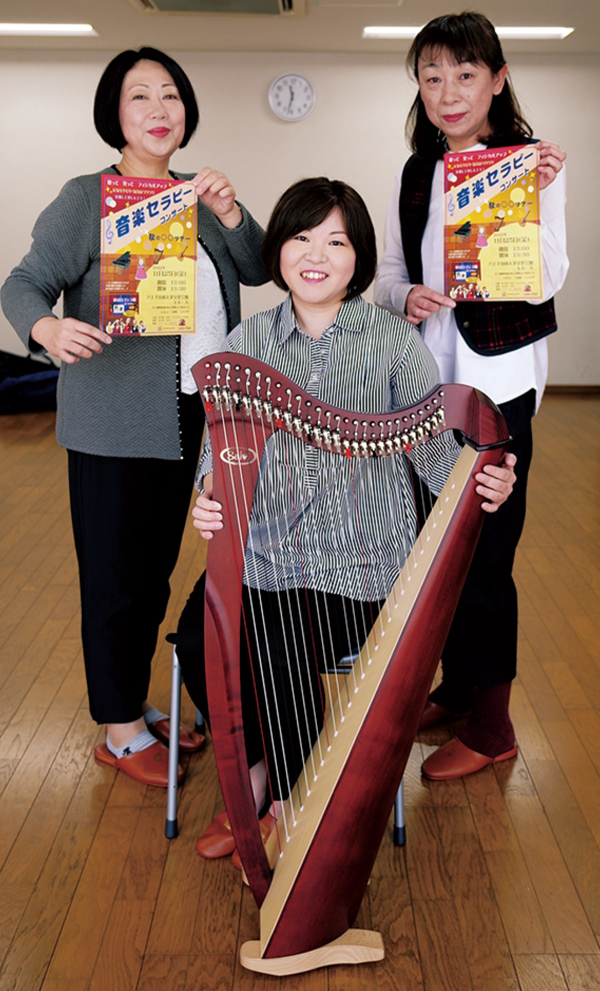 企画したのは同会の講師で音楽療法士の森脇美佐さん(鑓水在住)=人物風土記で紹介=、長谷川真弓さん(青梅市在住)、矢嶋瑞貴さん(東大和市在住)の3人。当日は、唱歌・童謡、歌謡曲、フォーク、オリジナルなどを演奏する。
