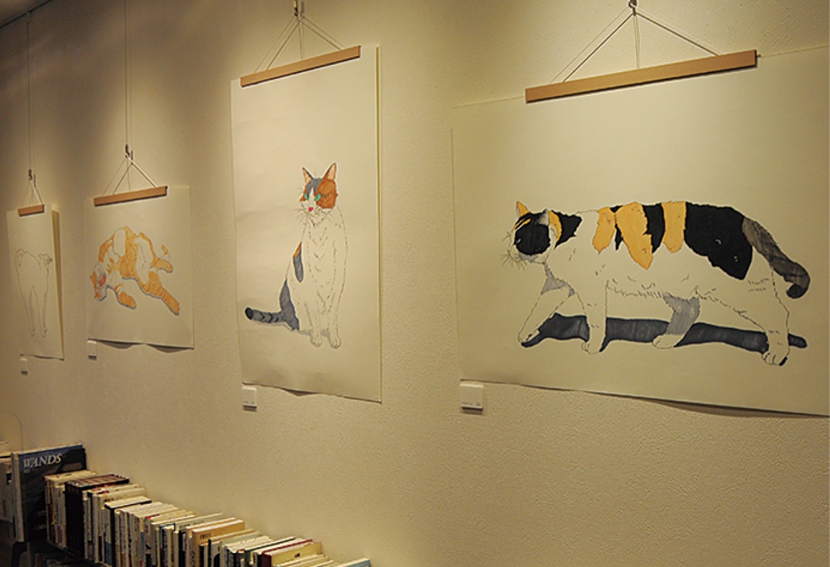 一点を凝視する猫、歩く猫、だらける猫--。初沢長の喫茶店「ヴィ・マエストロ」では、猫のイラスト展が開催されている。11月26日(土)まで。