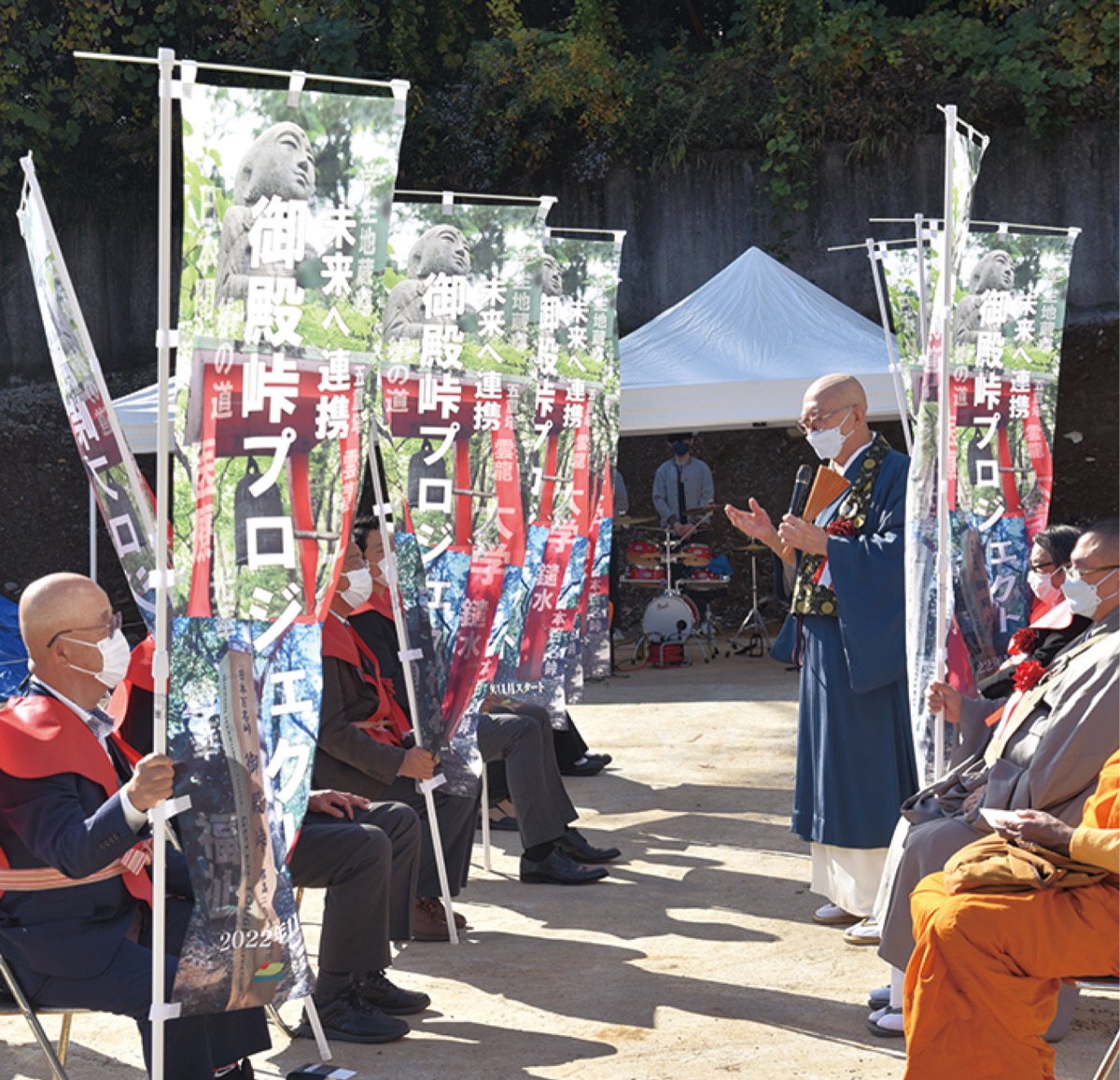 足利理事長は新しく製作した幟(のぼり)旗をお披露目。「この素晴らしい幟に全てが込められている。歴史や文化のある鑓水のまちに人が集まるよう、プロジェクトを次代につないでいきたい」と思いを語った。発起人代表の八王子日本閣・中村忠正社長は「この計画を地域の繁栄に結びつけられるよう、皆さんに力を授かりながら進めていきたい」と話した。