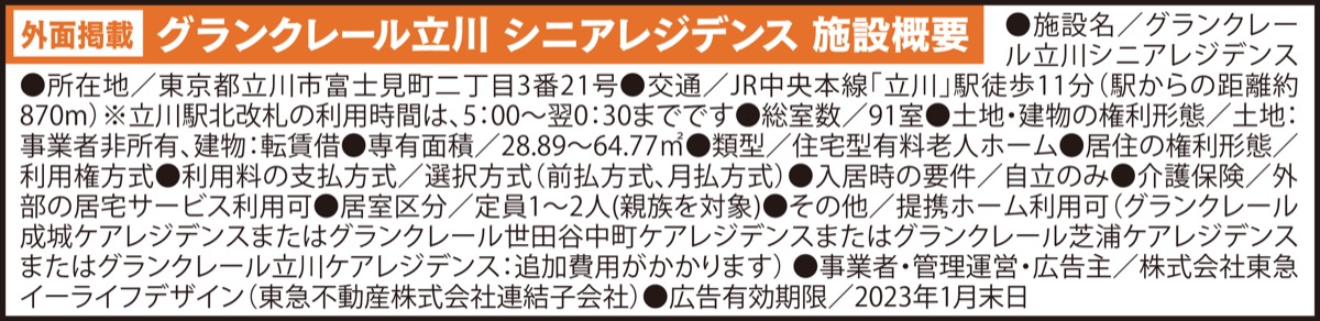東急不動産HDグループのシニア住宅「グランクレール立川」