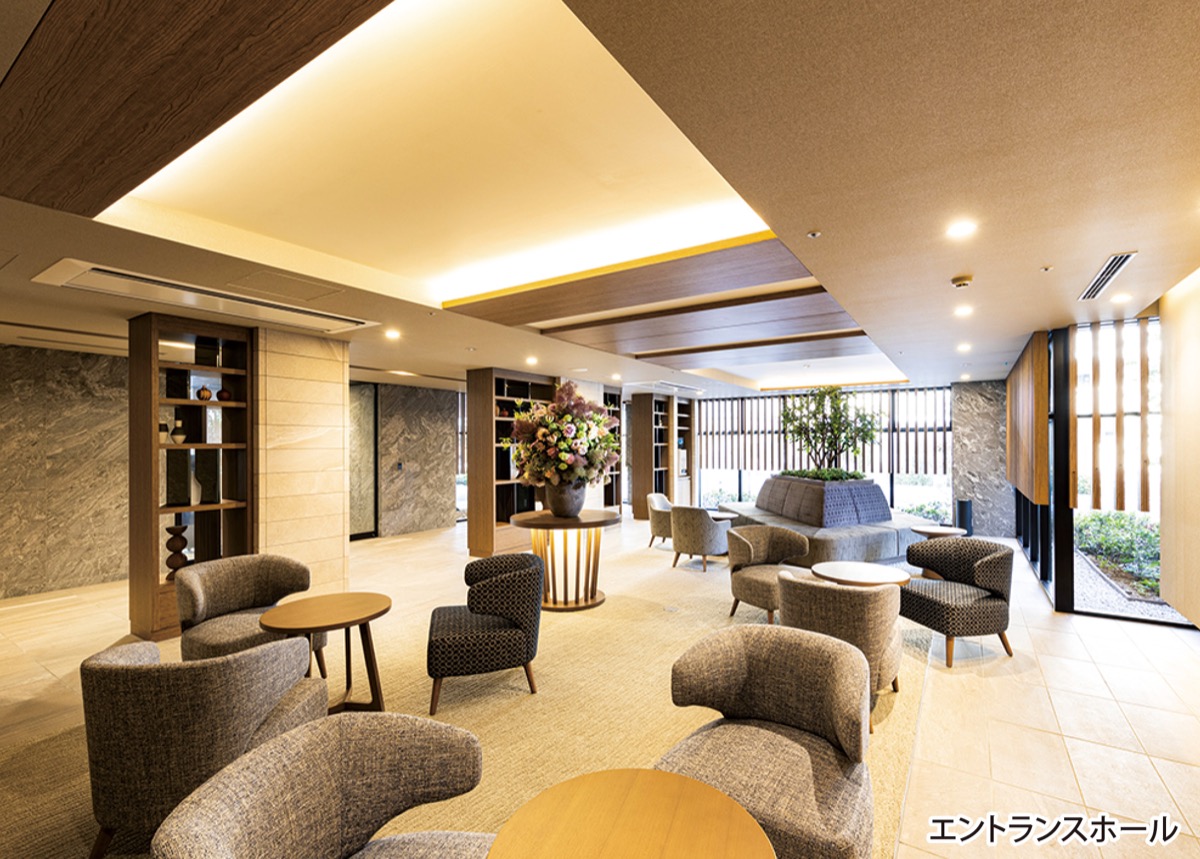 住宅内は上質感のあるエントランスホールや予約不要で食事可能なダイニング、大浴場など共用部が充実。併設するカルチャースクールでは運動や学びの場も。将来介護が必要になった時は、同一建物内の介護住宅に住替え可能というのも安心だ。