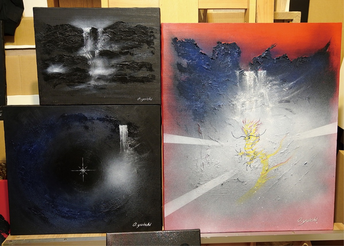 そこから1年間、試行錯誤を重ね、「神の滝」を完成させた。滝と岩場の対比を強調し「白く輝く滝は希望の光を発し、圧倒的な岩場も暗くなるほど発光している様子を描いた」と説明する。