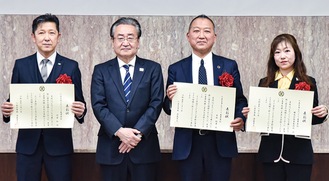 市は2月2日に市役所で授与式を開き、被表彰者らと石森孝志市長が懇談した。石森市長は独自の技術開発をたたえ、「市内のものづくりや産業をけん引してもらいたい」と激励。門倉氏は「新しい発想でオンリーワンを目指してやってきた。八王子の名が知れ渡るよう尽くしたい」、2度目の同表彰となる平塚氏は「環境と省エネ技術に特化してきた。浅川の水が飲めるような環境を実現したい」、長谷川氏は「八王子の企業であることに誇りを持ち、飛躍したい」と思いを語った。