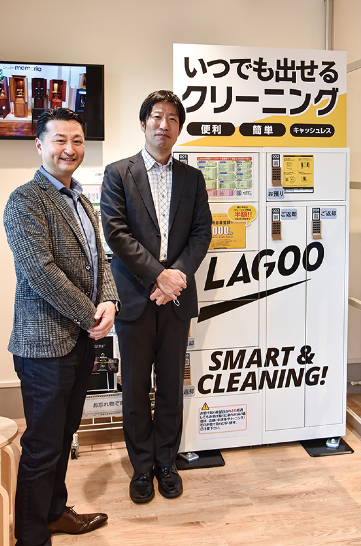 「店内なら夜遅くても安心。クリーニング店の新しい取り次ぎ先になれば」と落合社長。杉浦社長は「お客様の選択肢を増やす第一歩」と語った。同店では2月末までクリーニング料金半額の特典も。問合せは【電話】042・696・3353。