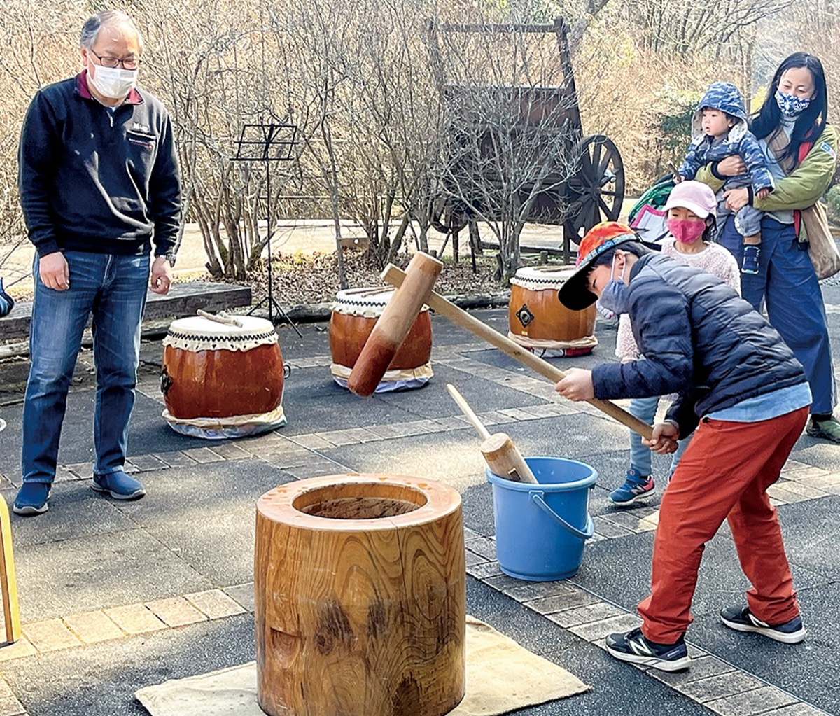 童謡「夕焼け小焼け」が今年100周年を迎えることを記念し、上恩方町の夕やけ小やけふれあいの里のふれあい館で2月23日、餅つき体験会が行われた。200人ほどの住民が訪れた。