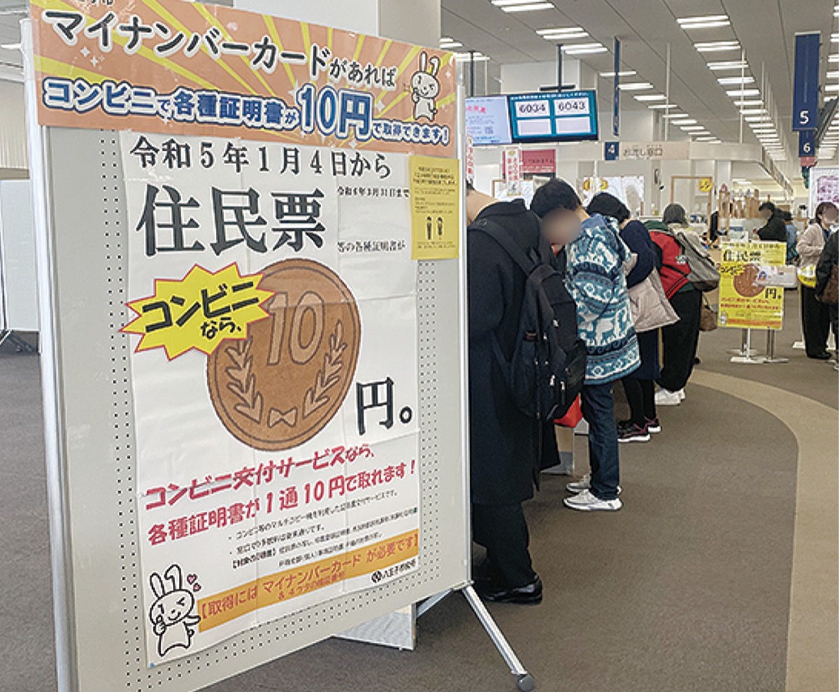 国は今年度中に、マイナンバーカード(以下マイナカード)がほぼ全国民に行き渡ることを目標とし、さまざまな施策で普及促進を図っている。八王子市でもこれまで、申請者に3千円分のポイントを付与する自治体独自策「八王子版マイナポイント」を実施。商業施設や大学などへの「出張申請窓口の開設」、多摩地域初の「コンビニでのマイナカード利用による証明書交付手数料10円キャンペーン」などを展開している。