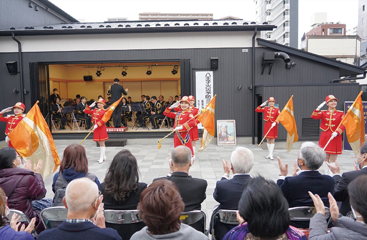 八王子市の伝統・文化や芸能を発信する同施設には、多くの観客が来場。音楽隊の演奏、カラーガーズ隊のフラッグ演技を楽しんだ。クラシックやJ-POPの演奏、カラーガーズ隊の華やかなフラッグ演技で会場は熱気に包まれた。