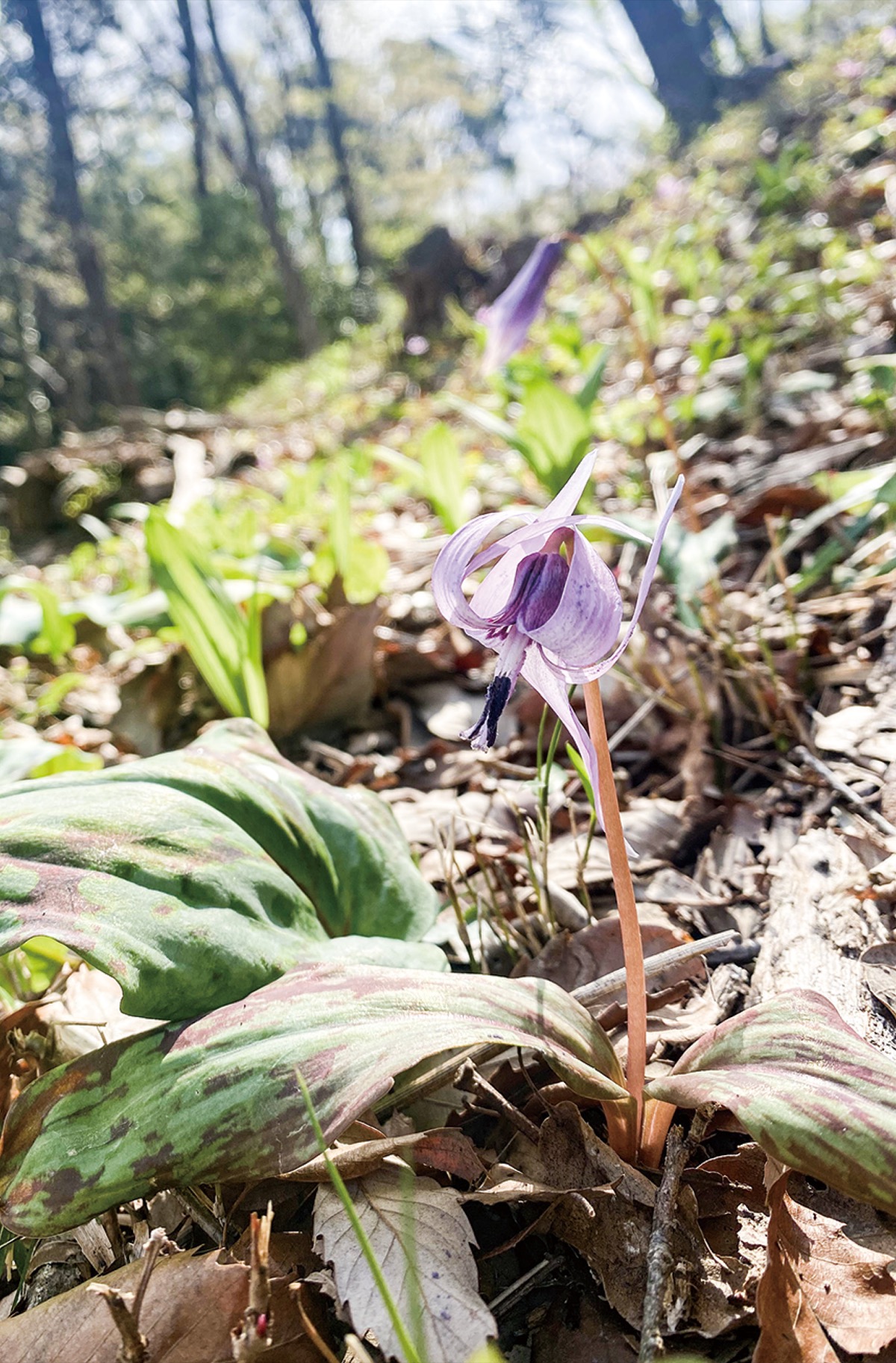 そのかわいらしい見た目から「春の妖精」ともいわれるカタクリ。春先が開花時期で、見頃を迎えた先月下旬、片倉城跡公園(片倉町)でも多くのカタクリが訪れた人たちの目を和ませた。