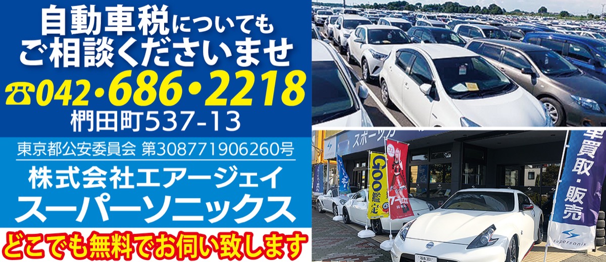 「廃車にはお金がかかる?」「いいえかかりません」。転居や免許返納で乗らなくなった車の処分は、高価買取で話題のスーパーソニックスに相談を。素早く親切な接客が好評。どんなに古い車も普通車なら期間限定で最低価格5万円〜。引き取りや面倒な手続きも全てお任せ。手数料も負担してくれる。名義変更後は完了書類がもらえる。「下取りや廃車にする前に一度ご相談ください」