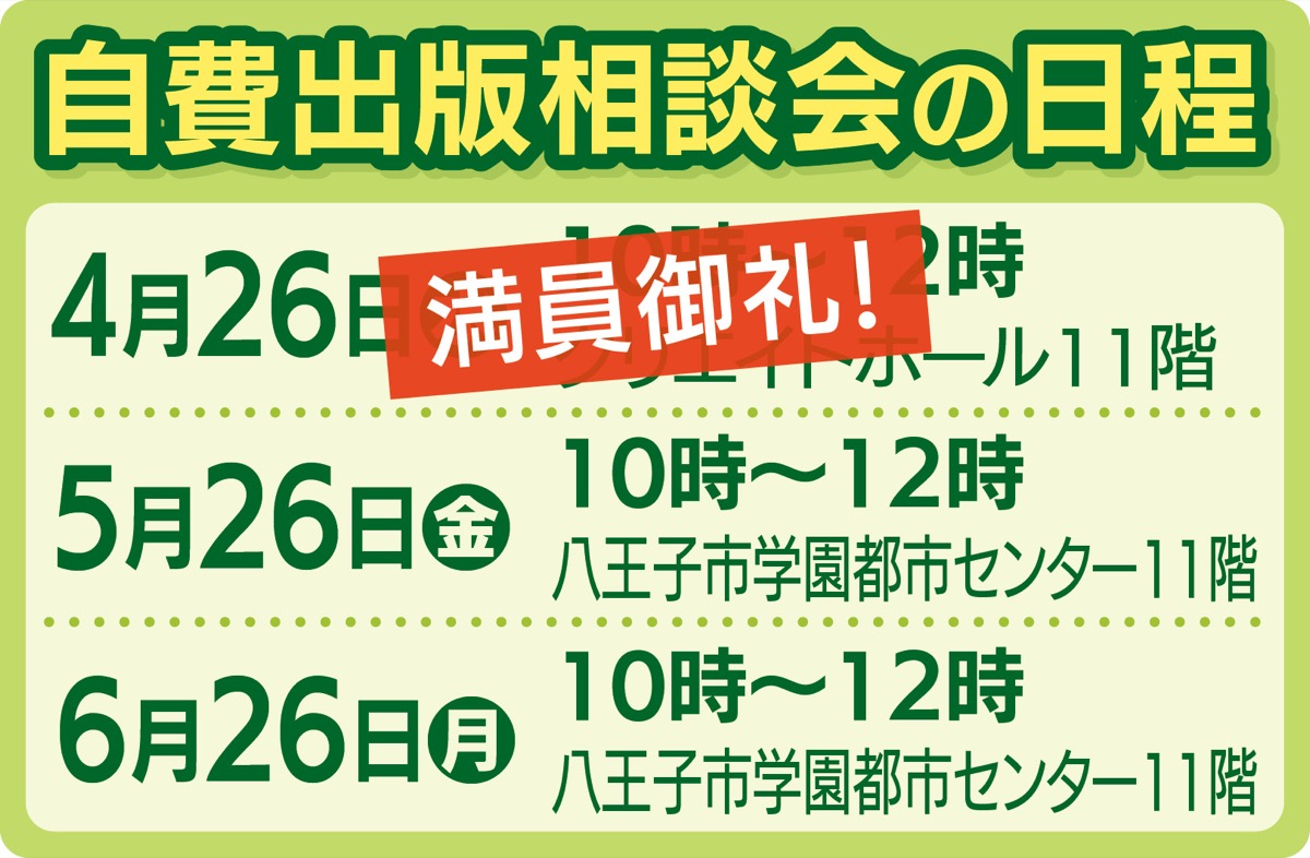 これから執筆する人、すでに原稿ができている人、親戚や友人の原稿を本にまとめたいと思っている人、電子書籍に興味のある人など、出版に少しでも関心のある人が対象。同社では5月開催のほか、6月も相談会を設け参加者を募っている。4月は好評にて終了。