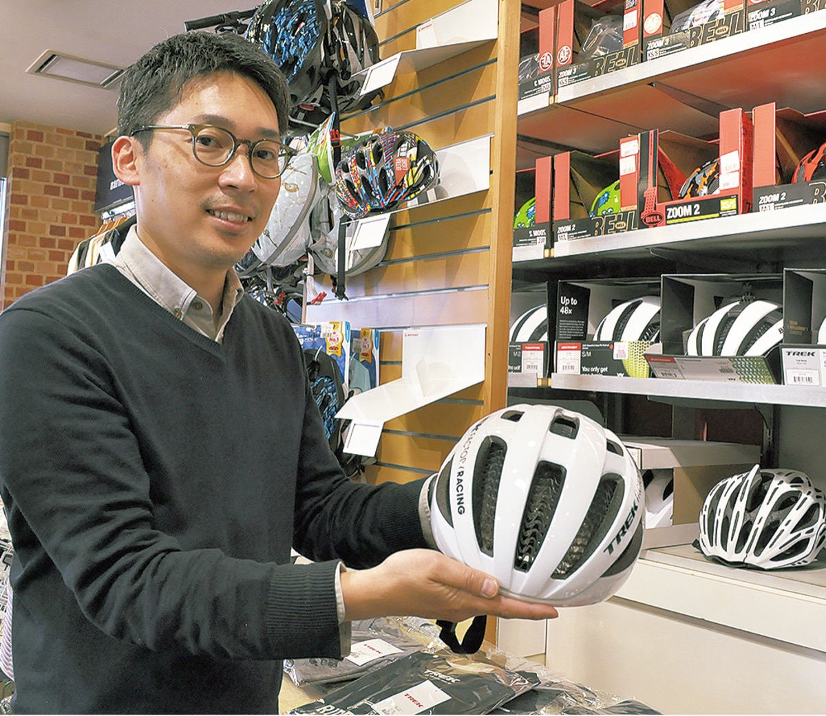 自転車販売店でも影響が見られる。横山町のレジャーハウスミヤザキでは、年明けからヘルメットに関する問い合わせが急増。同店の宮崎充啓社長は「メーカーにも在庫がなく、全国的に品薄な状況。徐々に市場に出回ってくるとは思うが」と実情を語る。ヘルメット選びのポイントとして、かぶり心地や重さ、通気性などがあるといい、同店の西村征也さんは「メーカーによって形状やサイズも異なり、転倒時に脳を守る『Mips』などの機能を備えたものもある。実際に着用してみて、用途に応じて選んでもらえれば」と語る。一方で「努力義務になったからではなく、万が一に備えて自分の身を守るためにヘルメットをかぶるようにしてほしい」と強調する。