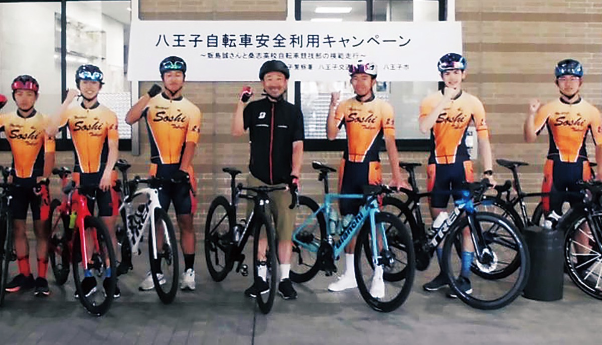 自転車の安全利用を啓発するため、八王子警察署などが4月29日に自転車競技のオリンピアン・飯島誠さんを招いたキャンペーンを実施した。