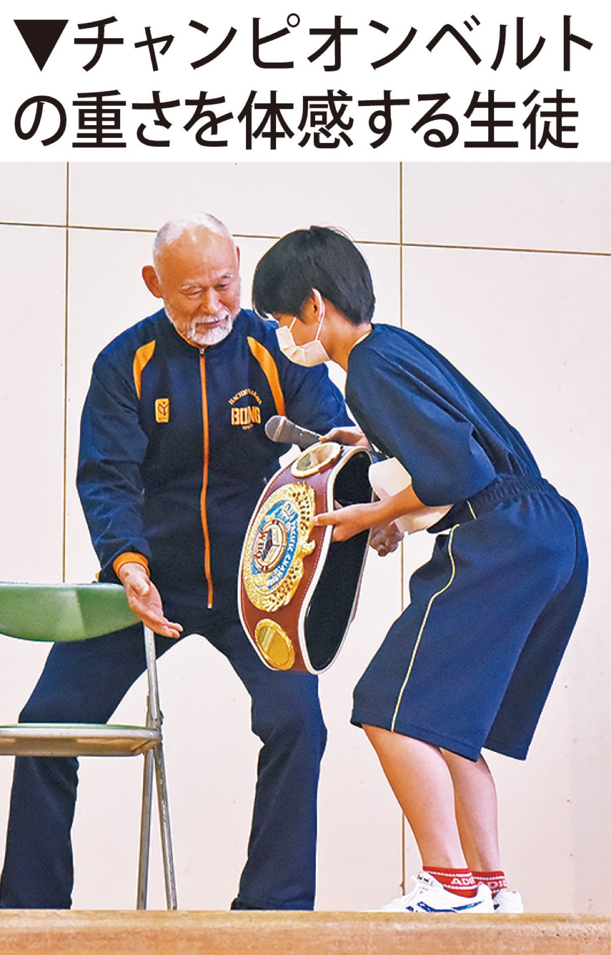 同ジムの中屋一生会長は「中学生とふれあうことで(佐々木選手が)学んだことも多い。7月8日、エスフォルタアリーナ八王子での2度目の防衛戦は、地元の応援を力に変えてほしい」と思いを込めた。