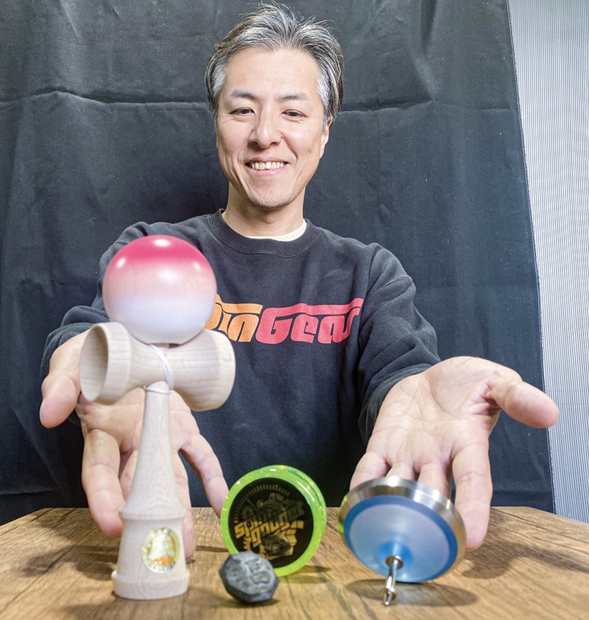 そのラインナップから、「昔遊びの道具」としてとらえられがちなスキルトイ。近年はそのボディの素材の進化などにより、繰り出される技はさらに複雑で高度なものに。同社ではスキルトイの振興や普及を目的とする「スピンギアカップ」と名付けた交流大会を、05年から不定期で実施。初心者向けの体験会やミニコンテスト、物販、プロによるステージショーなど、「初心者でも楽しめる敷居の低い大会」を企画してきた。