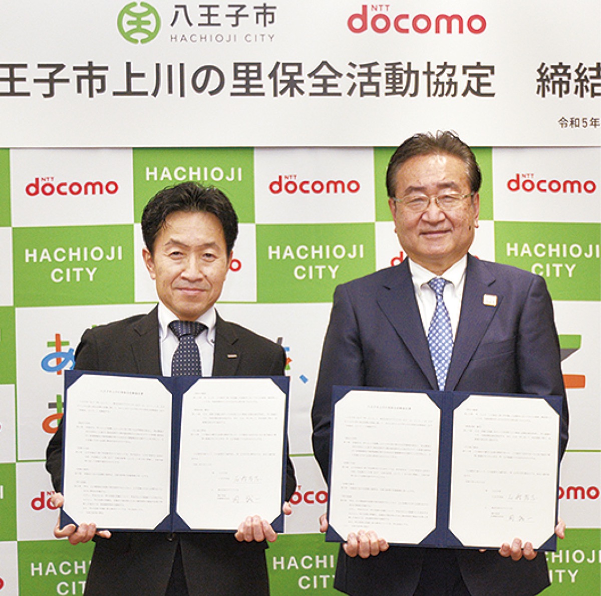 2023年6月時点で、市が上川の里の保全活動協定を結んでいるのは8団体。大手企業としては、3年前に締結した本田技研工業(株)がある。今回の協定でドコモは林業機械の遠隔操縦や自動運転などの研究、環境保全・再生、子どもたちの環境教育などに取り組む。コカ・コーラは水源涵養を目的とした間伐や植林、子ども向けの自然観察会などを実施するとしている。